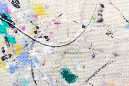 color paint stains on dirty white cotton fabric