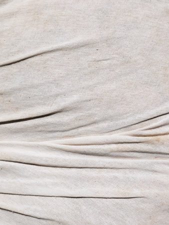 A captivating close-up of soft textured fabric drapery in natural beige tones. The gentle creases and folds create an elegant and cozy atmosphere, perfect for artistic projects and interior design.