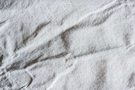 Close up of crumpled white fabric, soft focus. Abstract background.