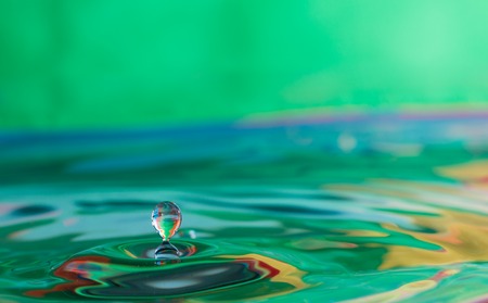 Water drop on the surface of the water. Colorful background.