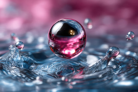 Captivating water droplet in mid air a stunning display of color and fluid dynamics
