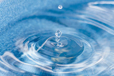 Environmental abstract background. Blue droplet splashing in clear clean water