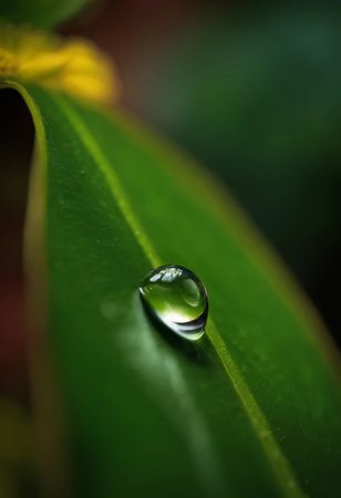 Transparent raindrop on leaf, reflecting nature beauty generated by artificial intelligence