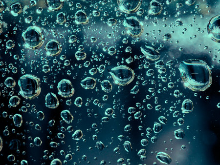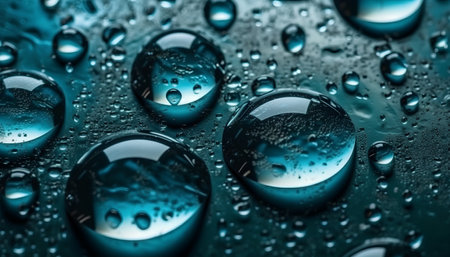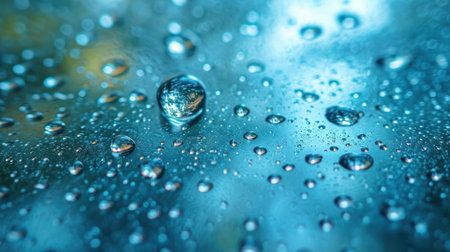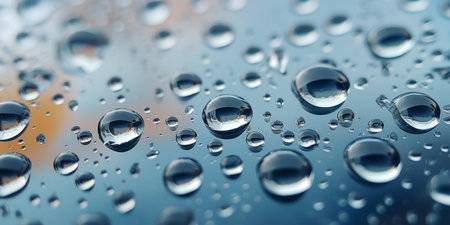 Close-up of water drops on glass surface as background._