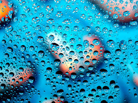 Water droplets on the glass with a colored background Drops of water