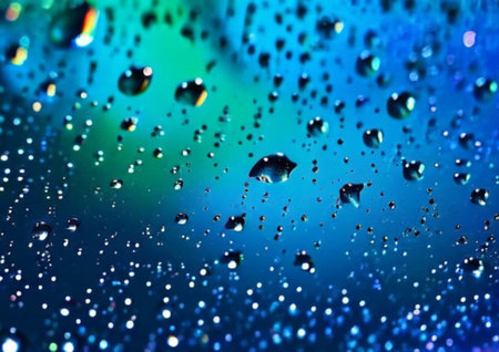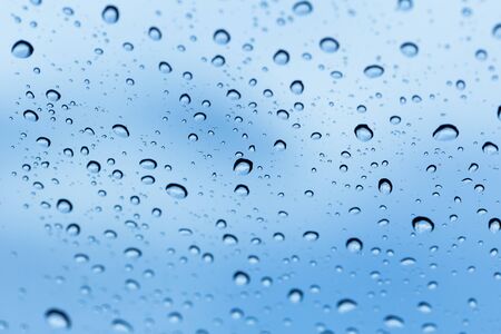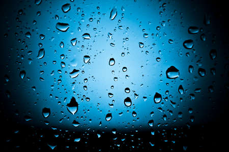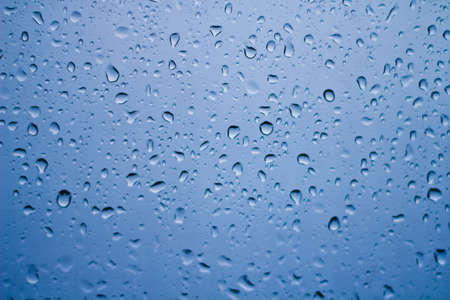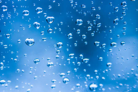 Close up water drops on blue background rainy