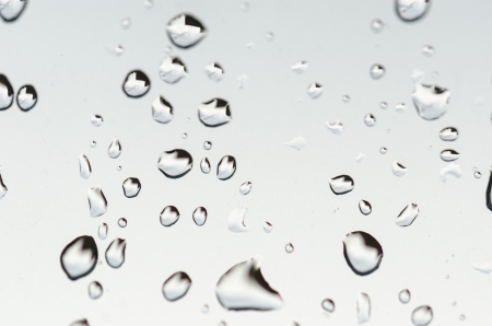 Water droplets on glass against white background