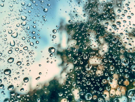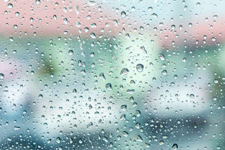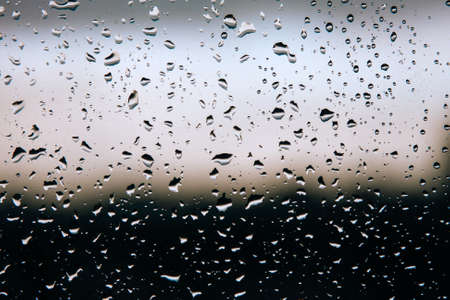 Background of raindrops on glass. Close-up, a window with drops of water. Selected focus. High quality photo