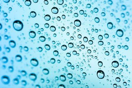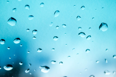 Blue abstract background of water droplets on glass