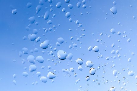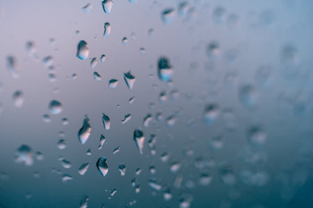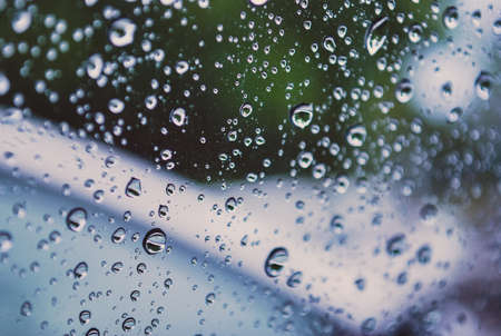 rain drops on car windshield after rain, water droplets on glass window in rainy season