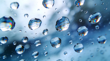Water droplets on a glass surface with a blurred background. macro