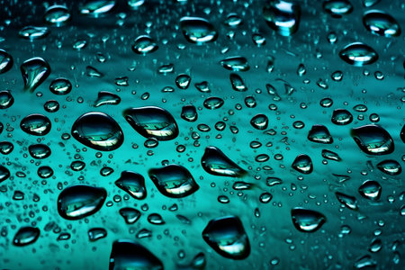 Water drops on blue and green gradient glass windows background. Created with Generative AI