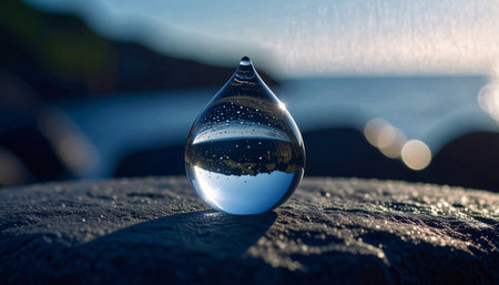 Evocative image depicting the captivating clarity and fragility of a water droplet.