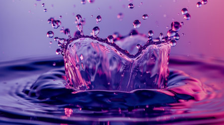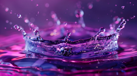 A dynamic and vivid water splash with purple and pink hues captured in motion, creating a visually stunning and energetic effect.