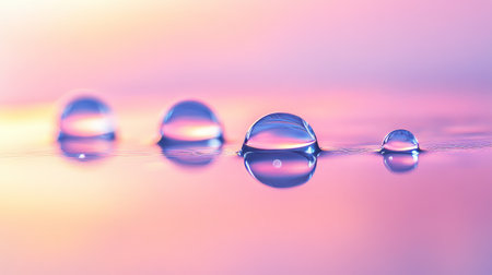 Water droplets on reflective surface in pastel colors, abstract nature concept