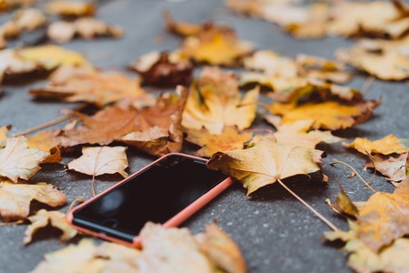The smartphone lying on the ground in the fall