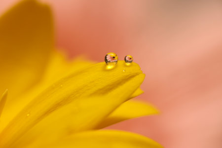 Beautiful Yellow Nature Background with Daisy Flower and Water Drop.Floral Art Design.