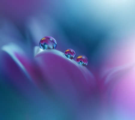 Violet flower petals with water drop close up. Macro photography of flower petals with dew