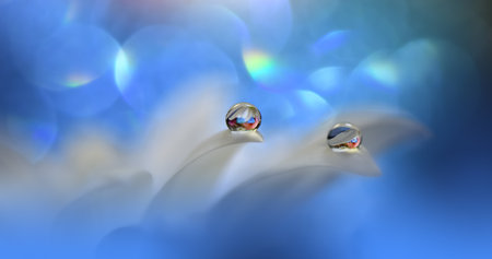 Beautiful Blue Nature Background with Dandelion Flower and Water Drops.Floral Art Design.