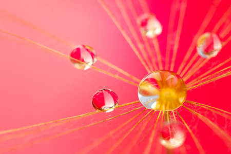 Beautiful drops on a dandelion seed. Beautiful soft background. Water drops on dandelion. Soft dreamy artistic image.