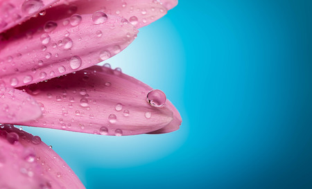 Beautiful Blue Nature Background with Daisy Flower and Water Drop.Floral Art Design.