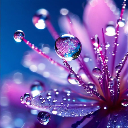 flower with dew drops - beautiful macro photography with abstract bokeh background