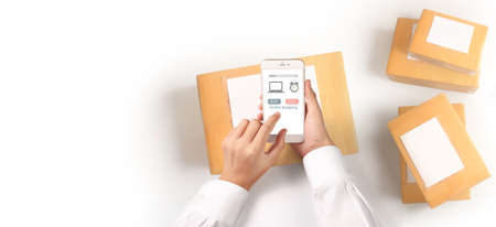Business owner working. Online shopping SME entrepreneur. Buy and sell online