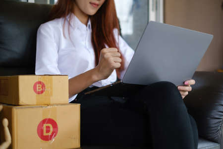 Internet online shopping, Young business start up online seller owner checking the customer orders from email or website. Order online for customer convenience