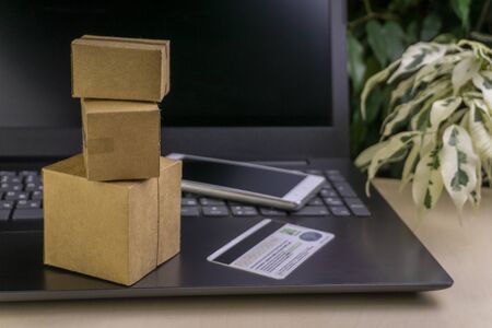 Online shopping - Paper cartons or parcel on a laptop keyboard. Shopping service on The online web and offers home delivery.