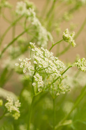 Flowers of water Hemlock (Conium maculatum) growing near the river