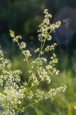 Meadowsweet, or Labaznik (lat. Filipendula) is a genus of perennial grasses of the Rosaceae family. Meadow on a sunny summer day.
