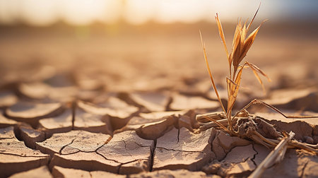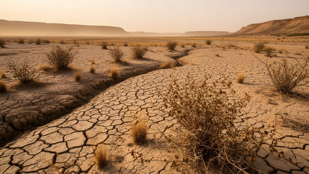 drought-stricken landscape with parched earth and cracked ground, created with generative ai
