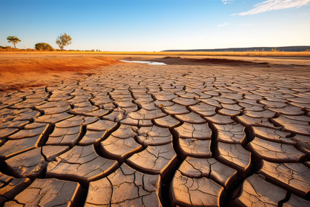 This powerful image portrays parched, cracked earth, vividly showcasing the dire and severe consequences of prolonged drought and climate change on our delicate environment and its ecosystems