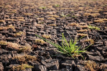 grass growing in the dried lake ground, horizontal shot with shallow DOF