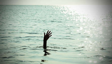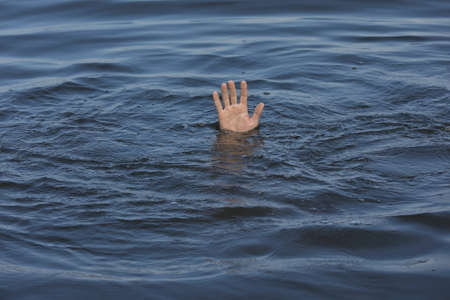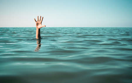 Drowning victims, Hand of drowning man needing help. Failure and rescue concept.