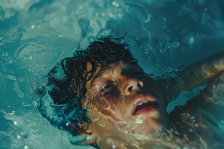 A boy drowning in a pool, with no one around to help, struggling to breathe