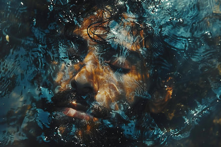 Suffering and tragic converge in this evocative image, as a troubled man's scream cuts through the sea's tumult, symbolizing the depth of his struggle against drowning.