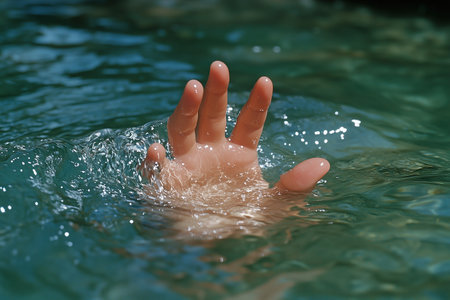 hand in the water of sea of a person who is drowning and seeks help