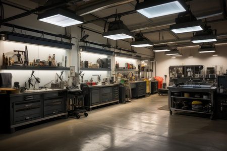 Workshop Table with Electronic Tools and Components in a Modern Lab.