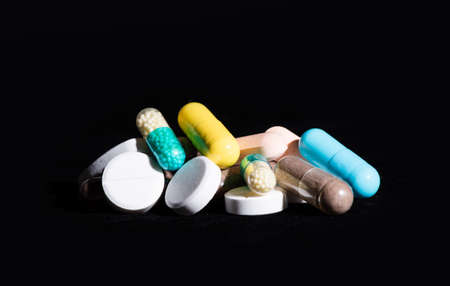 Medical pills isolated on the black background