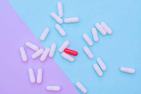 Red pill among many whites with a medicine for the treatment of various diseases