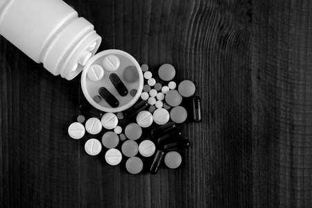 Drugs and medicine in a bottle. Healthcare emergency, medicine for virus and bacterial infections
