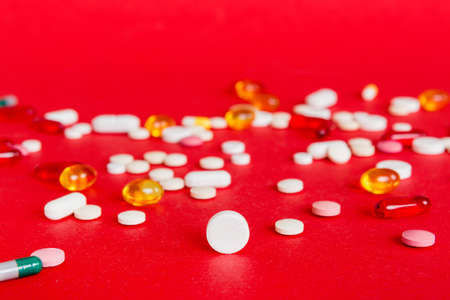 Red pill among many whites with a medicine for the treatment of various diseases