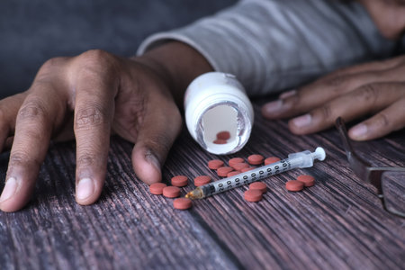 man substance dependence medication Drug syringe and cooked heroin