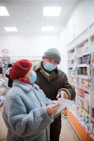 Portrait of couple of pensioners in pharmacy