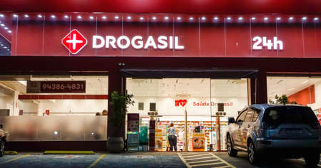 Sao Paulo, Brazil: store front view of brazilian drugstore Drogasil. Brand logo.
