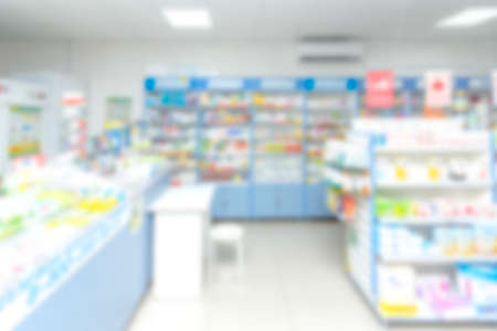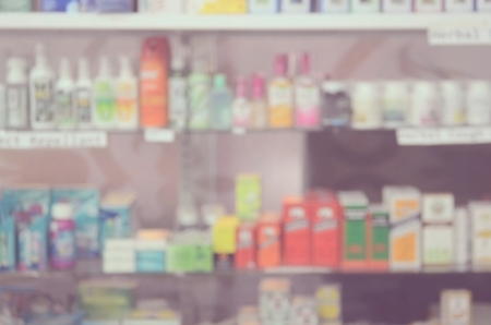 blurry medicine cabinet and store medicine and pharmacy drugstore for background