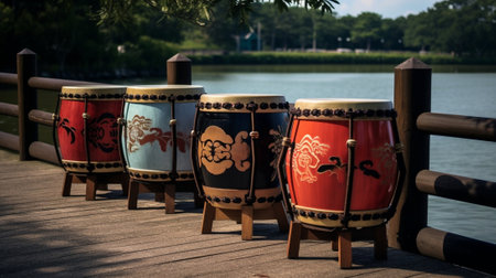 Music in the park drums on background wooden floors : Generative AI