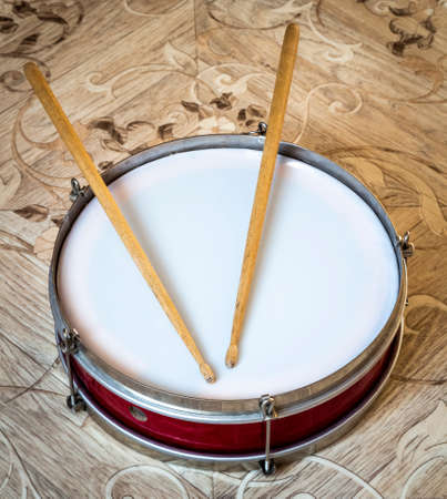 Music background. Drum close up image.Snare and drum sticks