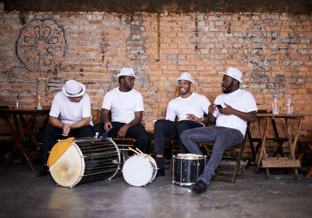 Their beats will keep you moving and grooving. Shot of a group of musical performers playing together indoors.
